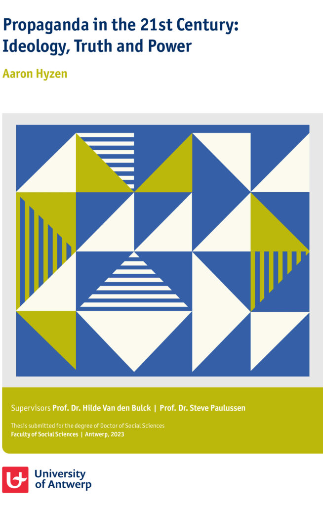I obtained my Ph.D. from the University of Antwerp. My doctoral dissertation, Propaganda in the 21st Century: Ideology, Truth and Power, examined propaganda in both traditional cases (e.g., war, state propaganda, electioneering) and emerging contexts (e.g., QAnon, anti-vax movements, flat earth). Through this work, I demonstrated the continued importance of propaganda as a form of strategic communication in contemporary political and social life. I emphasize understanding the relationship between the digital affordances of Web 3.0, e.g, generative AI, algorithmic recommender systems, and aspects of the post-truth era—such as mis/disinformation and conspiracy theories—while recognizing the importance of accurate or “true” information as an often underappreciated component of propaganda campaigns. I also work to untangle the role of technology and ideology in order to overcome the conflation of medium and message, and to clarify the problematics of the digital age.